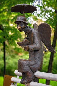 Подборка самых необычных скульптур в Петербурге Наш город славится известными на весь мир музеями, дворцами и мостами. Но есть у Северной столицы и необычные, малоизвестные достопримечательности, которые тоже имеют своё очарование и красоту. 1. "Петербургский ангел" Показать полностью… "Петербургский ангел" в пальто и с книгой сидит на скамейке в Измайловском саду. Он вобрал в себя черты пожилых ленинградцев, которые являются образцом интеллигентности. Адрес: Измайловский сад, набережная Фонтанки 2. Нос майора Ковалева Интересный памятник посвящен главному герою повести Н. Гоголя "Нос". Придумал его Ризо Габриадзе в 1995 году, незадолго до того установивший около Цирка знаменитого "Чижика-пыжика". Как и персонаж повести, скульптура любит погулять. В 2002 году "Нос майора Ковалева" исчез. В 2003 году на лестничной площадке жители дома № 15 по Средней Подьяческой улице нашли беглеца и вернули на место. Адрес: Вознесенский проспект, 36/11 3. "Размышление" Один из самых необычных памятников двора филфака — "Размышление". Его подарило в 2009 году правительство Неаполя. Скульптуру сделала Лидия Коттоне из застывшей лавы вулкана Везувий. Адрес: Университетская набережная, 11 4. Вавилонская башня техногенной эпохи Еще одна замечательная скульптура двора филфака СПбГУ. Кажется, в ход пошло все, что было под рукой: гаечные ключи, банки, батарейки, велосипедные шестеренки и даже рамы. Адрес: Университетская набережная, 11 5. Муму Трогательный "литературный" памятник установлен у кафе "Два му". Грустная собака ждет своего хозяина, а тот, видимо, как раз решает ее судьбу, сидя в харчевне. Адрес: перекресток улиц Тургенева и Садовой 6. Влюбленная парочка Яркая топиарная скульптура украсила дворик на Фонтанке близ усадьбы купца Глебова. Влюбленные остается вечно зелеными, поскольку созданы из проволоки и искусственного газона. Адрес: набережная реки Фонтанки, 90 7. Памятник Осипу и Надежде Мандельштам Во дворе Санкт-Петербургского университета есть монумент "Памятник любви". Композиция, представляющая парящих в воздухе поэта и его жену, создана голландским скульптором Ханнеке де Мюнк. На постаменте высечена первая строфа стихотворения "О, как же я хочу", написанного поэтом в воронежской ссылке. В ссылке тогда с Мандельштамом находилась и Надежда Яковлевна, которая не захотела покинуть супруга и разделила с ним все тяготы жизни на поселении. Адрес: Университетская набережная, 11, аллея между Главным зданием и Филологическим факультетом 8. "Мир детям" Поющий фонтан "Мир детям" представляет собой скульптурную композицию из бронзовых детей, кружащихся в хороводе. Струи воды и монументы "танцуют" под популярную детскую музыку стран мира. Адрес: проспект Энгельса, 154 9. Памятник "Человеку-невидимке" Эта необычная достопримечательность — плод фантазии петербуржцев. Пустой постамент с надписью находится на набережной реки Фонтанки, напротив входа в психбольницу. Говорят, что раньше на пьедестале стоял памятник Александру II, после революции скульптуру убрали, а пустой постамент оставили. Адрес: набережная Фонтанки, 132 10. Памятник жертвам политических репрессий Необычный образ сфинкса в Петербурге создан Михаилом Шемякиным. Одна сторона лица у сфинксов обычная, а другая, обращенная к Неве и Крестам, изъедена до черепа. Адрес: набережная Робеспьера, напротив тюрьмы "Крес
